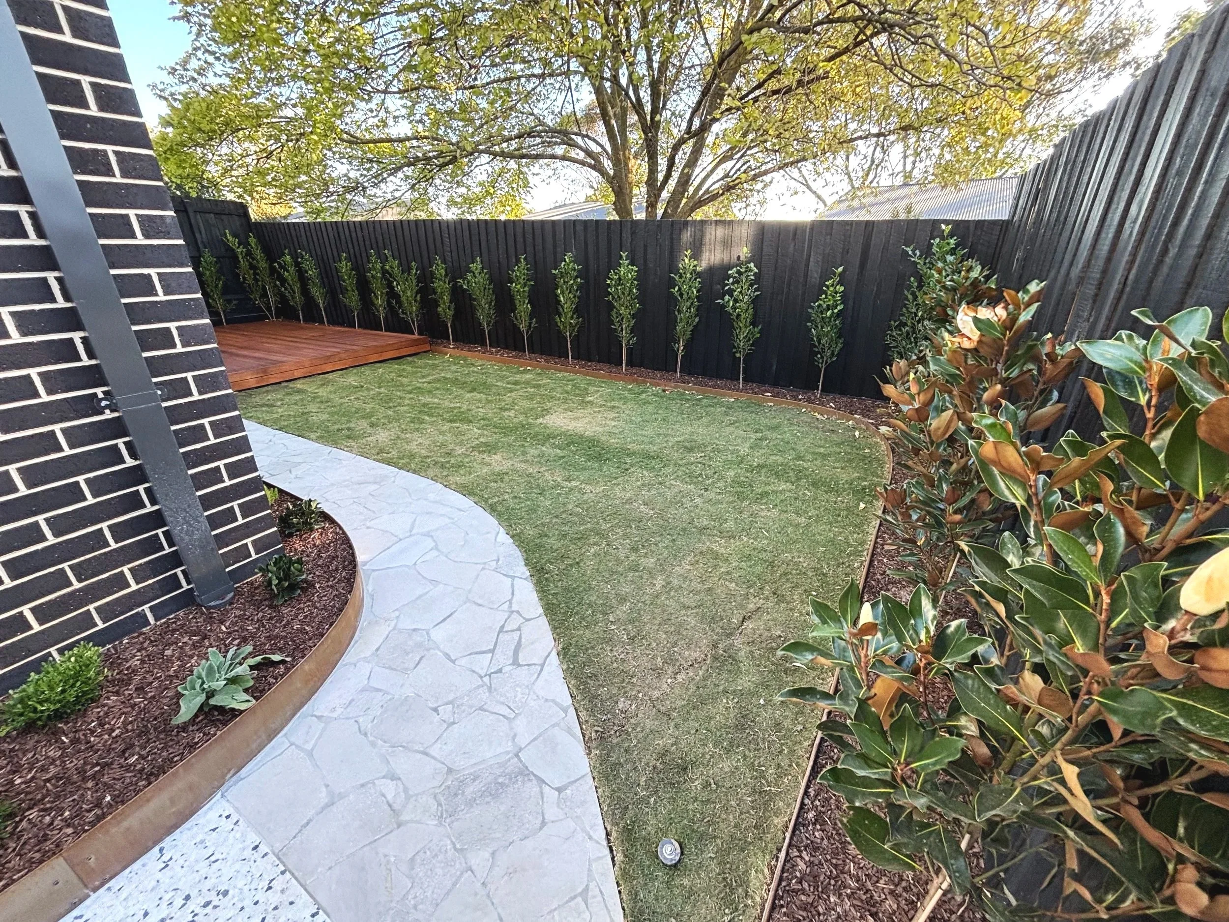 A full front and backyard rejuvenation to complement the recent house renovations. This project consisted of over 150 plants installed throughout the space to help create a lush green environment where the homeowners could take full advantage of their generous entertainment area along with the large turf space and surrounding vegetation. With an abundance of features throughout the garden, this front and backyard showcases a classic Australian outdoor space for the whole family to enjoy.