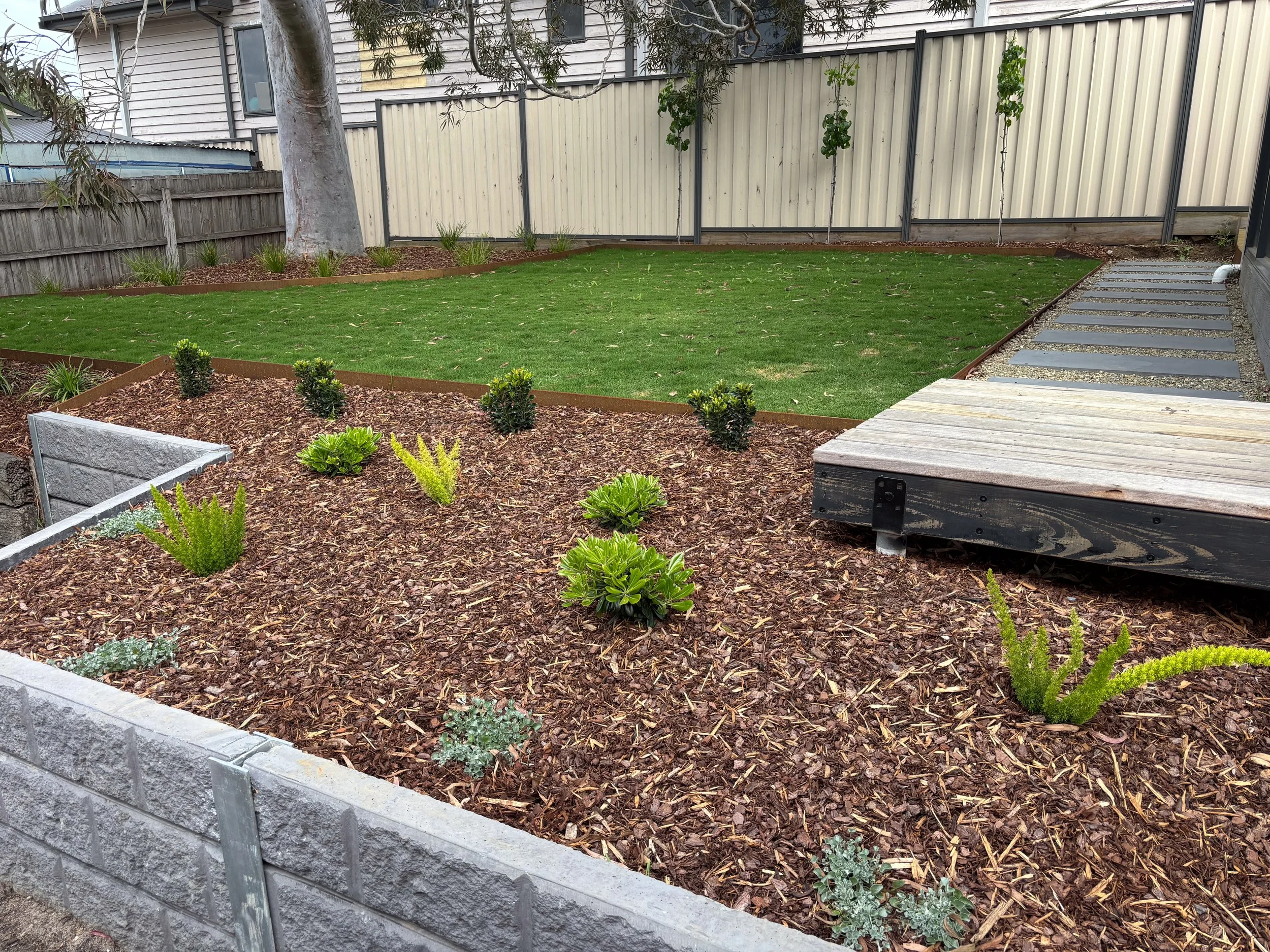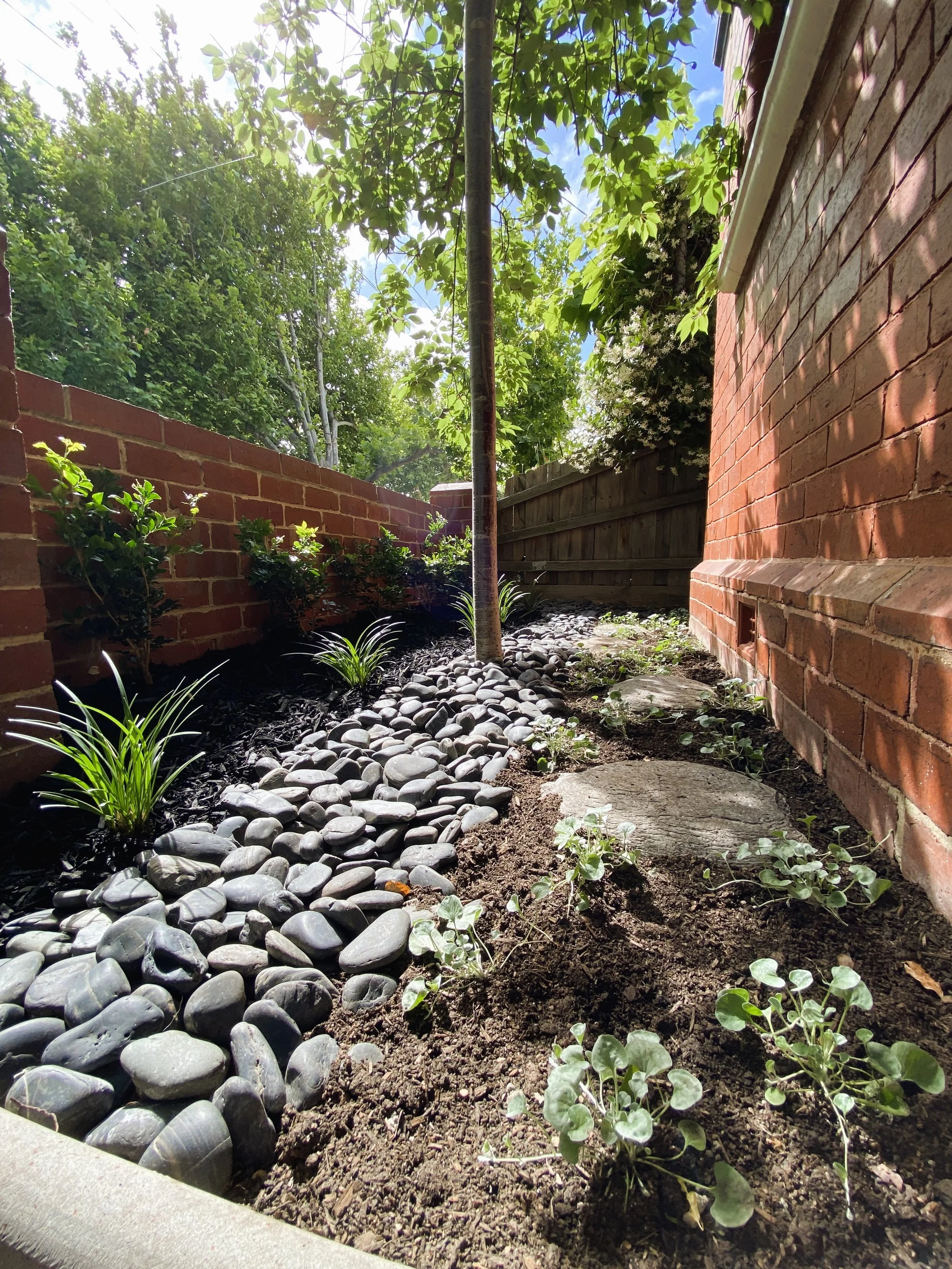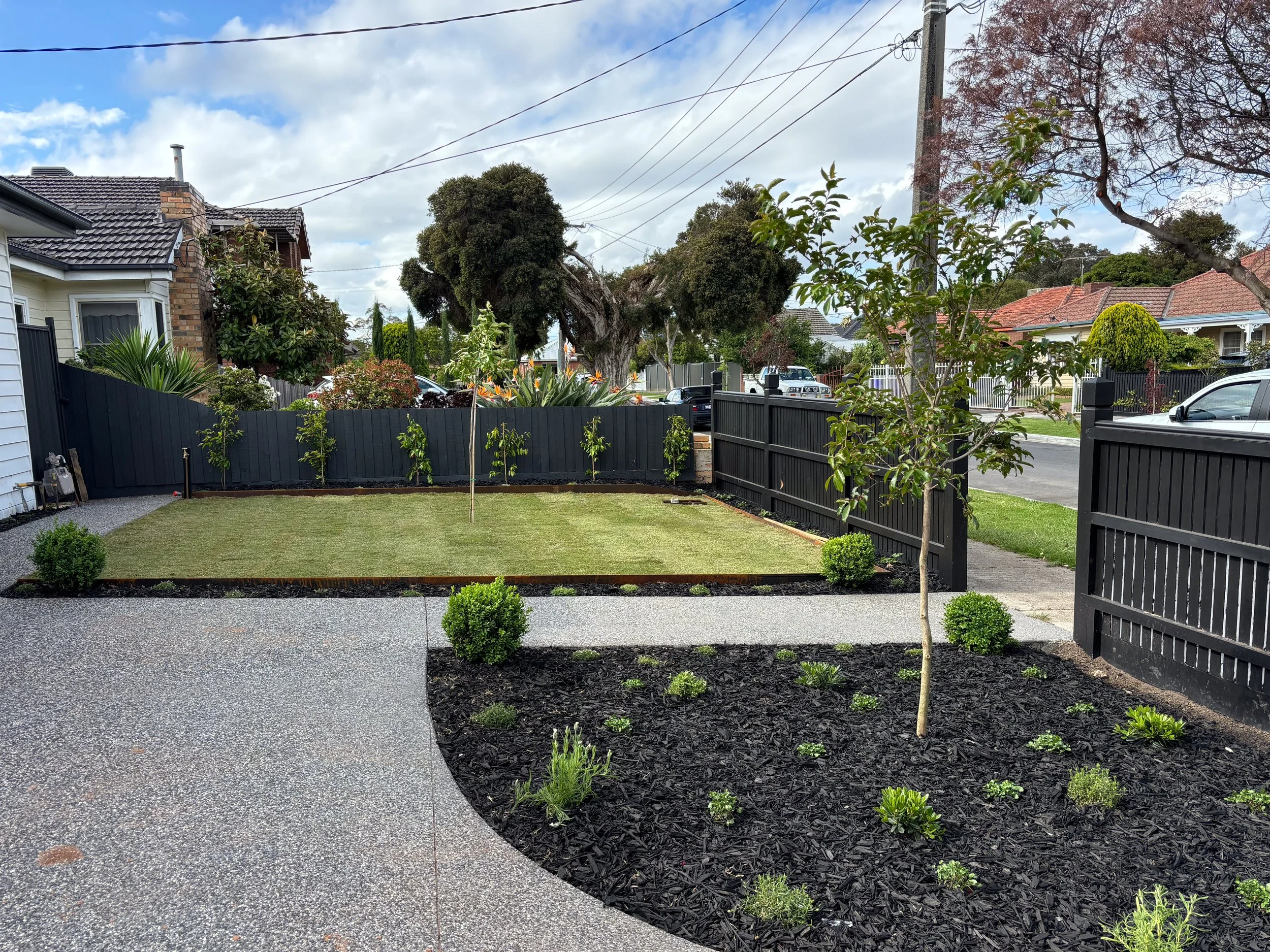 In beautiful Middle Park, this front yard got the TLC it deserves. With an abundance of plants varying in growth habits, this space brings elegance and sophistication to match the natural beauty that this suburb provides. Along with the sleek black pebbles and mulch, this front yard has street appeal and vibrance that it was always supposed to have.